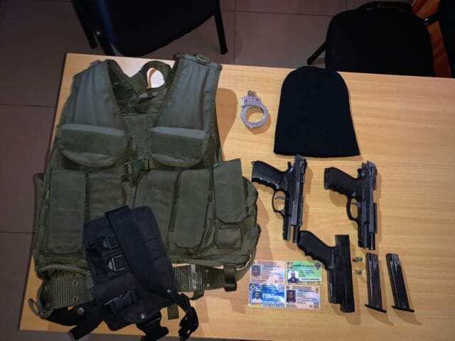 En tanto que al segundo, se le ocupó un carné de la Academia G:F:A:M., Brigada de Operaciones con rango de primer teniente, un arma de choques eléctrico, un par de esposas y un chaleco multiuso color verde, así como armas no letal (de fogueo), con marca y numeración ilegible y sin documentos hasta el momento.
