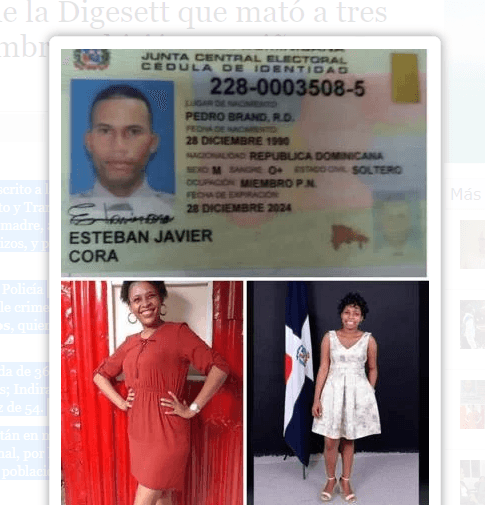 Fue un agente de la Policía Nacional, adscrito a la Dirección General de Seguridad, Tránsito y Transporte Terrestre (Digesett), quien ultimó a una madre, a dos hijas de esta y a otro señor en Los Alcarrizos, y provocó heridas a un niño.