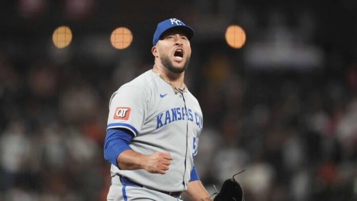 El cerrador dominicano Carlos Estévez salvó su juego número 14, preservando así la victoria para Kris Bubic, que lanzó siete entradas sin permitir carreras y perdió la oportunidad de juego sin hit en la sexto inning debido a un cambio oficial en la anotación, y los Reales superaron 3-1 el lunes a los Gigantes.