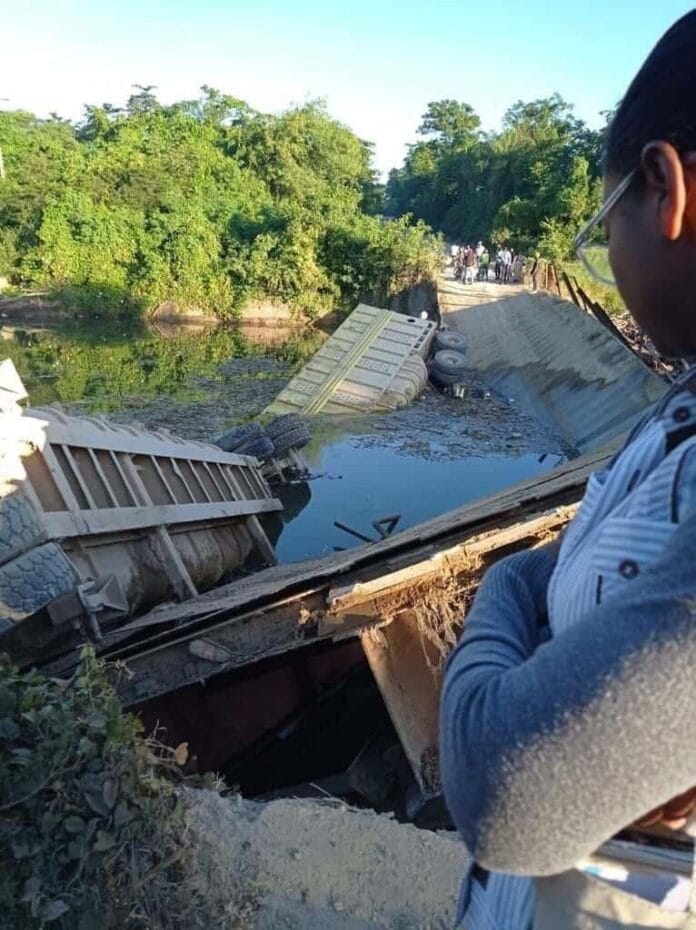 Colapsó la mañana de este martes el puente sobre el río Maguá en la provincia San Pedro de Macorís, mientras cruzaba una patana cargada de caña.
