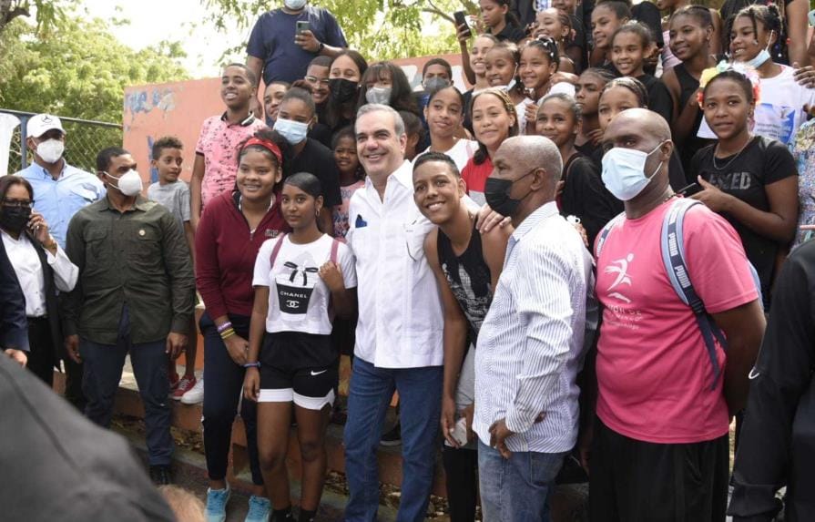 El presidente Luis Abinader encabezó este sábado el primer palazo para la construcción de un multiuso deportivo en el Esanche Isabelita, Santo Domingo Este.