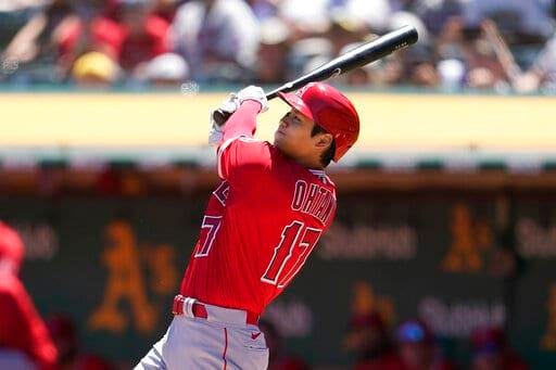 Fue su octavo jonrón del año: una línea que viajó 129,5 metros (425-pies) al fondo de las gradas del jardín derecho al conectar en la primera entrada un sinker de Frankie Montas. Mike Trout alcanzó base con un sencillo antes de la llegada de Othtani al plato.
