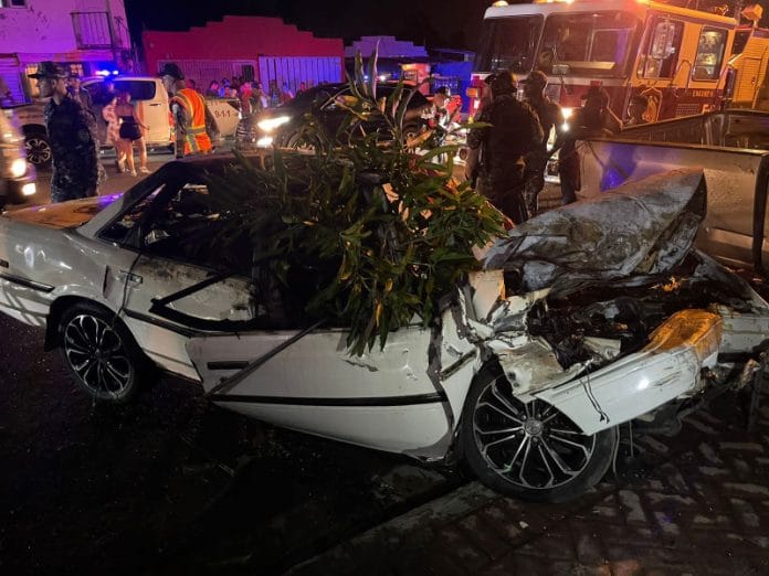 Dos personas perdieron la vida calcinados, cuando el vehículo en el que viajaban explotó, tras chocar con otros dos, en un hecho registrado la noche del sábado justo frente a una estación de bomberos.