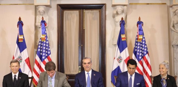 La firma del acuerdo se realizó en el Salón Verde del Palacio Nacional. Al finalizar el acto el presidente Abinader encabezó una conferencia de prensa donde no se permitió preguntas a los periodistas.