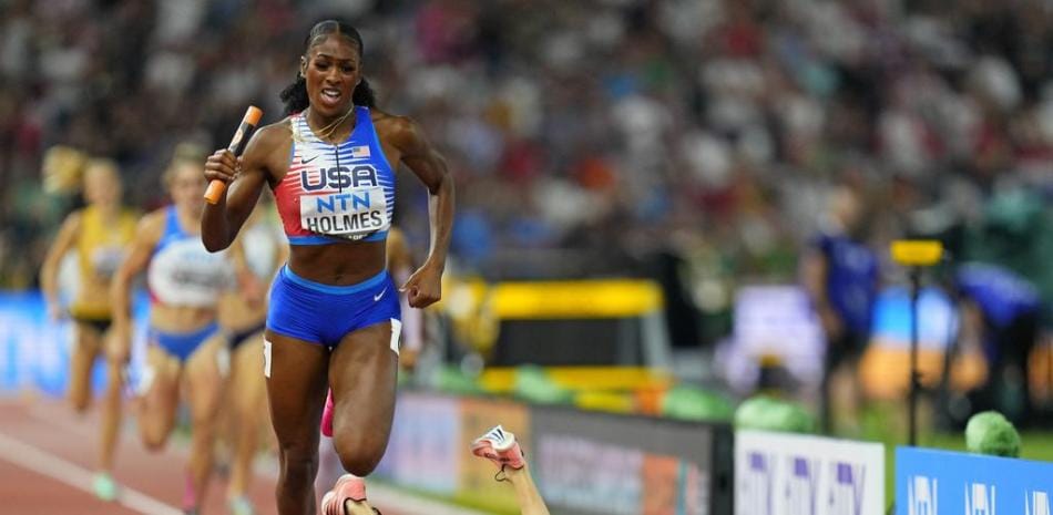 La neerlandesa Femke Bol, codo a codo con la estadounidense Alexis Holmes en la última recta, sufrió una caída espectacular a menos de diez metros de la meta. Perdió el testigo y Países Bajos, el equipo favorito, fue descalificado.