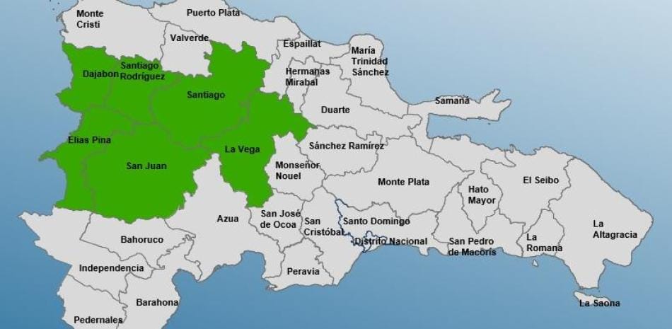 Las provincias en alerta son: Santiago Rodríguez, Santiago, Dajabón, La Vega, Elías Piña y San Juan.