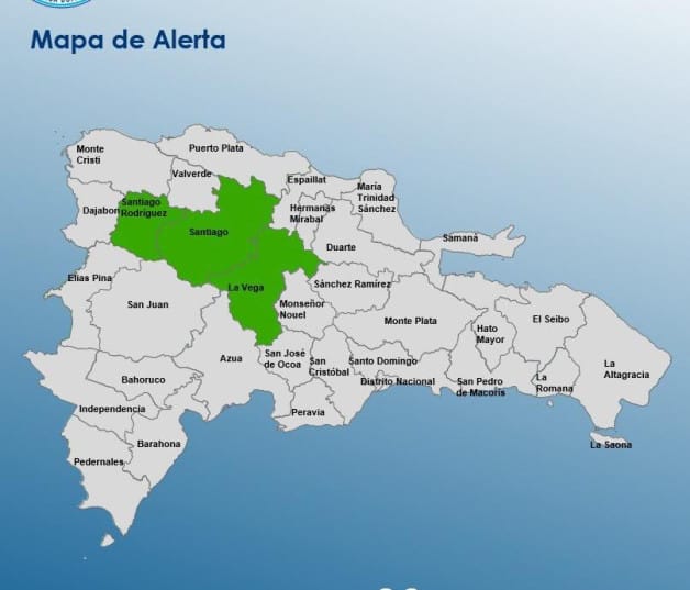 Asimismo, el COE indicó que las localidades alertadas son Santiago Rodríguez, Santiago y La Vega.