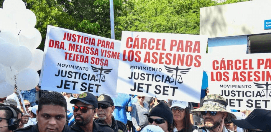 La protesta convocada por el Movimiento Justicia por el Jet Set para este domingo se desarrolla entre  dolor y sed de justicia por los fallecidos el 8 de abril de 2025, tras desplomarse el techo de la discoteca.
