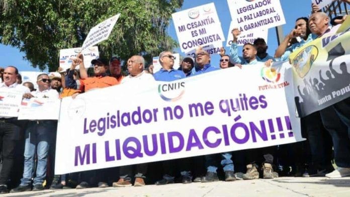 En medio de los estudios del proyecto de la reforma laboral que propuso el presidente Luis Abinader, un grupo de sindicatos de trabajadores se movilizó este martes hasta el Congreso Nacional para exigir a los senadores que no toquen el beneficio de la cesantía en la enmienda al Código de Trabajo.