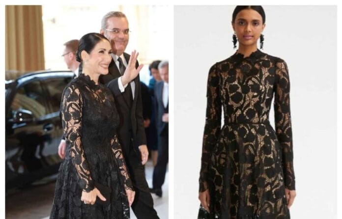 Arbaje participó junto al presidente Abinader en la actividad que tuvo hora y media de duración, a la que llegó vestida con un diseño de Oscar de la Renta. Se trató de un exquisito diseño valorado en más de RD$350,000 (RD$351,592.04, para ser exactos).