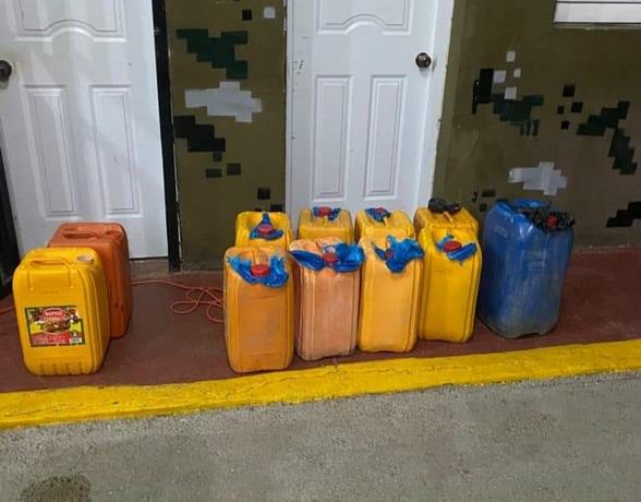 Según una nota preliminar, los militares sorprendieron a más de ocho personas con “garrafones” en plena acción y procedieron a incautarlos.