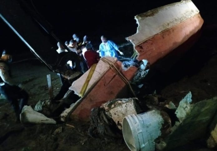 Esta nueva búsqueda en el fondo del cayuco entre tierra y arena encontraron restos humanos, que se presume pertenecen a otras dos personas, con ellas sumarian 17 los restos humanos recuperados.