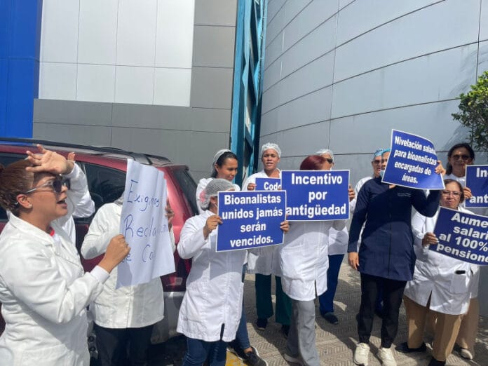 Psicólogos, bioanalistas, enfermeras y técnicos del Hospital José María Cabral y Báez en Santiago suspendieron sus labores este martes en protesta por el incumplimiento de demandas salariales y beneficios prometidos por el gobierno desde 2022.
