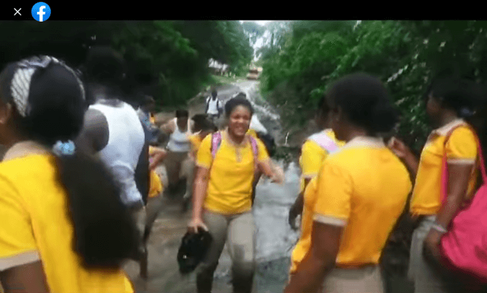 En un video que circula en las redes sociales (Facebook), se ve cuando los estudiantes cruzan sobre las crecidas aguas de una cañada en la comunidad La Culata (La Cañada de Pula), cuando se dirigen hacia el centro educativo, ubicado en el municipio de Partido.