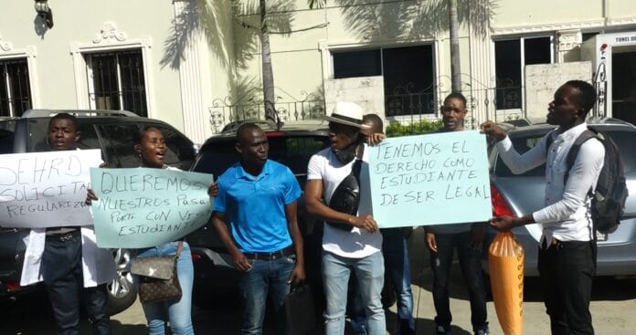 Portando carteles reclamado sus pasaportes y su derecho a estudiar en el país en condición regular, los manifestantes anunciaron que, de no resolverse su situación, organizarán futuras protestas en la Cancillería y en el Palacio Nacional.