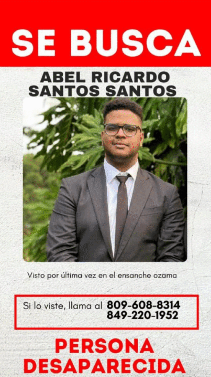 La desaparición de Abel Ricardo Santos Santos, un joven residente en el sector Ensanche Ozama, ha generado preocupación entre sus familiares, quienes no tienen noticias de él desde la mañana del sábado 26 de julio.