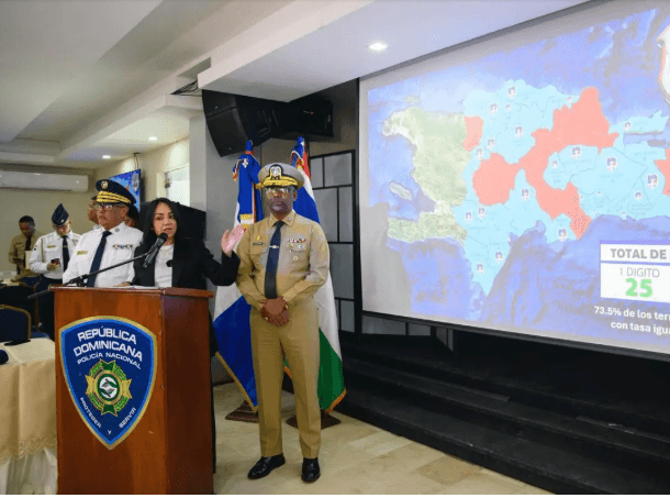 Raful explicó que, de acuerdo con el mapa de calor, 25 demarcaciones del país se mantienen por debajo de un dígito en la tasa de homicidios, mientras que nueve presentan mayores niveles de incidencia, zonas en las que se han reforzado las operaciones de seguridad.