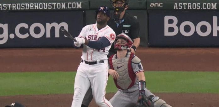 Altuve se abalanzó sobre el primer lanzamiento de Bailey Ober para el primer jonrón de su carrera en los playoffs. Álvarez conectó un tiro de dos carreras ante Ober en el tercero para poner el 3-0.