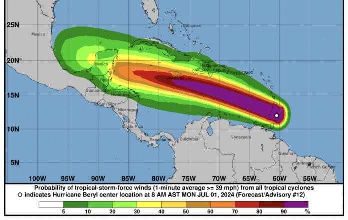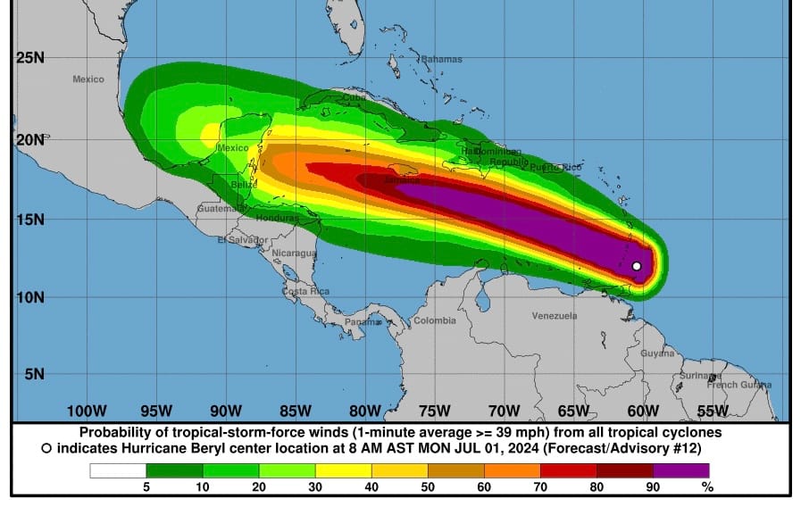Huracán Beryl pasaría este martes próximo al litoral sur de RD