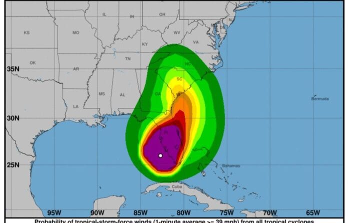 La institución prevé que toque tierra en la costa oeste de Florida como un huracán catastrófico pronto. Se espera que se debilite después de tocar tierra, pero Ian podría estar cerca de la fuerza de huracán cuando se mueve sobre la costa este de florida mañana, y cuando se acerca al noreste de Florida, Georgia y las costas de Carolina del Sur tarde el viernes.