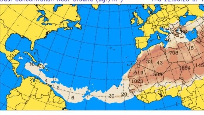 Desde este miércoles incide sobre el territorio dominicano concentraciones de polvo del Sahara que en combinación con el viento cálido del este/sureste incrementarán las temperaturas.