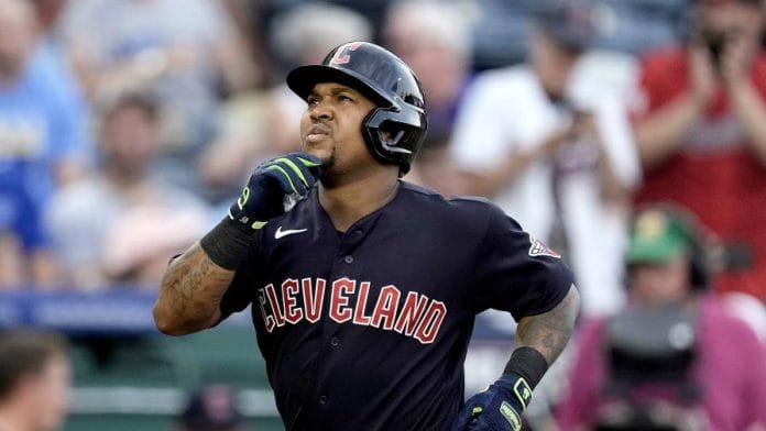 José Ramírez se robó el home plate para poner delante a los Guardianes de Cleveland en partido ante los Reales de Kansas City en el Kauffmann Stadium de Kansas City.