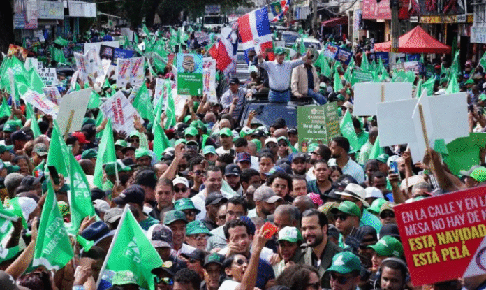 “Que recojan sus maletas porque es seguro que se van en el 28”, expresó en el discurso central que puso fin a la movilización, la cual reunió a una multitud que marchó por más de tres horas por distintos barrios del Distrito Nacional.