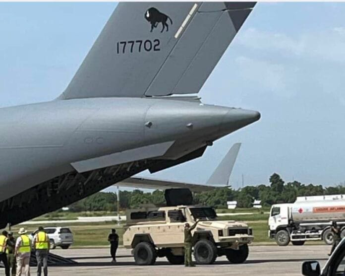 Los vehículos y algunas armas llegaron al vecino país a través del Aeropuerto Internacional Toussaint Louverture de Haití. El avión del ejército canadiense llegó la tarde de este sábado.
