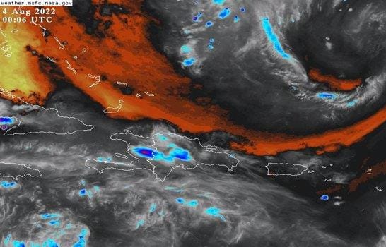 “Durante los días viernes y sábado, la vaguada en altura continuará determinando las condiciones del tiempo sobre la Republica Dominicana, esperándose que genere incrementos de la nubosidad que serán más frecuentes después del mediodía, los mismos, estarán acompañados de aguaceros dispersos y tronadas hacia poblados en las regiones noreste, sureste, cordillera central y la zona fronteriza, esperándose que desaparezcan al iniciar la noche”, indicó.