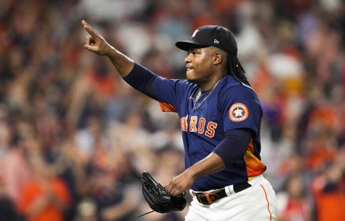 La pelota desapareció en el graderío elevado, a 40 pies de altura sobre el terreno. El abridor dominicano de los Astros, Framber Valdez contempló la escena y comenzó a saltar enloquecido en la cueva, lo mismo que buena parte de los 42.948 fanáticos, quienes agitaron además toallas anaranjadas.