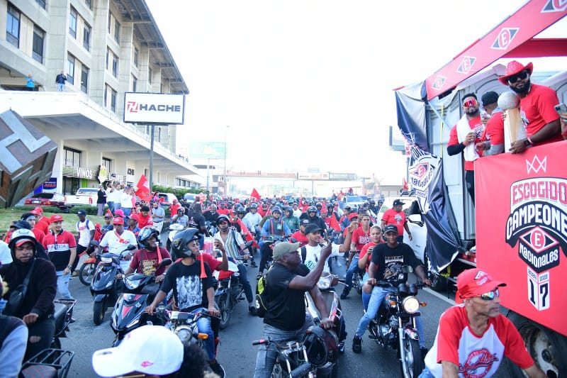 El desfile de los nuevos campeones del Torneo de Béisbol Profesional de República Dominicana inició a las cuatro de la tarde de este miércoles, con dos horas de retraso, cuando la patana forrada de rojo, animada por los principales jugadores del equipo, tomó la Avenida Tiradentes y dobló a la izquierda por la John F. Kennedy.