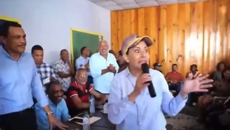 Tras esto, Cedeño reaccionó un poco asombrada y se disculpa con los presentes de una manera amable, pero aprovecha para instar a los presentes a apoyar al PLD.