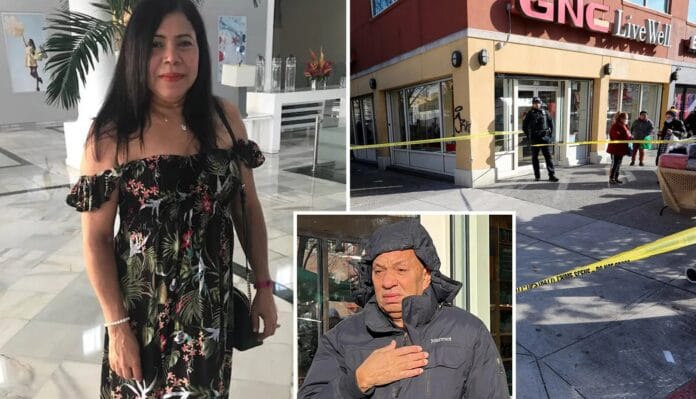 La mujer cayó frente a la tienda de medicinas naturales “GNC” y los «tiradores» huyeron en patinetas de la escena.