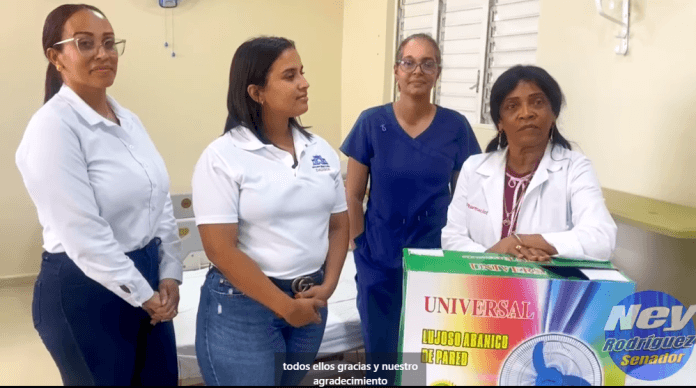 Dajabón, RD.- La Oficina Senatorial de esta provincia, hizo entrega de diez abanicos al Hospital Ramón Matías Mella, para ser utilizados en el área de preparto de dicho centro de salud.