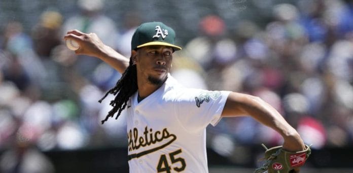 El segundo relevista de Oakland, Grant Holman, hizo su debut en las Grandes Ligas en la séptima entrada.