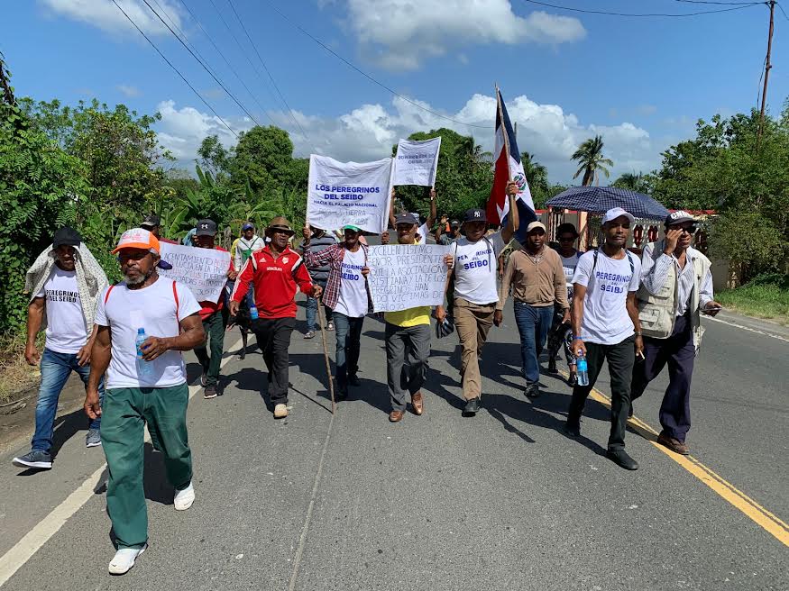 Marchando van hacia la capital los Peregrinos de El Seibo. Hace varios años que iniciaron esta metodología de lucha los trabajadores campesinos de las comunidades aledañas como la Asociación Mamá Tingó denunciaron ser perjudicados por la expropiación de unas cinco parcelas en la comunidad La Culebra, en Vicentillo, una zona agrícola.