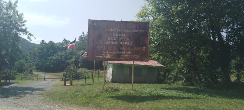En el lugar donde se contruye la presa, se observa un letrero desgastado por el paso de los años, el cual indica la ubicación de la contrucción junto a las oficinas del Instituto Nacional de Recursos Hidráulicos (INDRHI) y un puesto del Ejército de la República Dominicana, cuyos soldados bloquean e l paso hacia la obra.