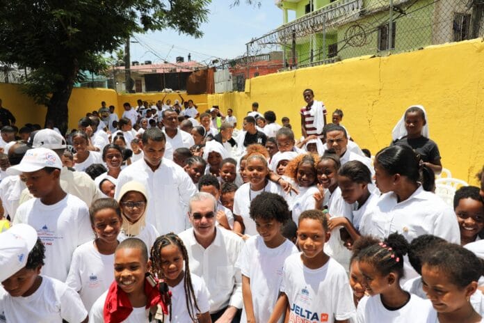 Posteriormente el Mandatario junto al director de Programas Especiales de la Presidencia, Robert Polanco, se trasladó a la Escuela Básica Salomé Ureña donde observó una jornada de inclusión social, realizada como parte de la intervención que ejecuta el Gobierno en el sector desde junio último.