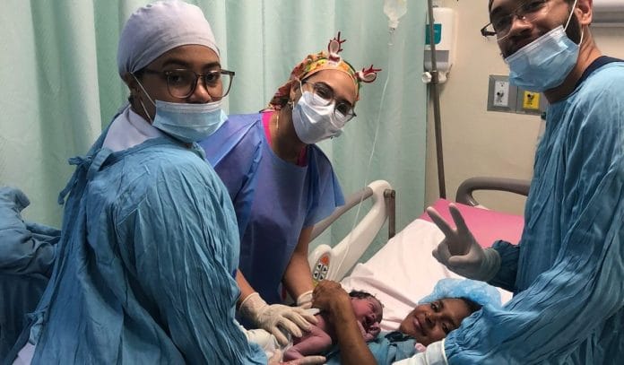 La labor de parto de la madre inició a las 10:56 de la noche del 31 de diciembre. Estuvo bajo la responsabilidad de la doctora Adriana Pérez en conjunto con el personal del servicio de enfermería.