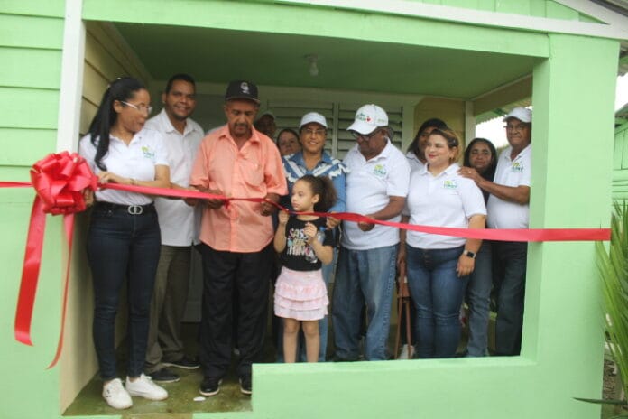 Con el corte de la cinta, quedó formalmente entregada la casa al señor Nelson Jáquez, en la comunidad Sangre Linda, Partido.