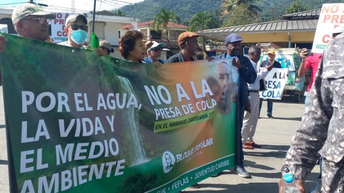 La manifestación se realizó en rechazo de la construcción de la Presa de Cola en Cotuí, provincia Sánchez Ramírez, exigiendo a la vez el cese de la actividad minera en el país y que sea sacada la Barrick Gold del territorio nacional.