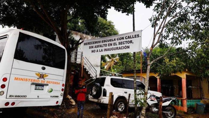 Para recibir al presidente Luis Abinader, los comunitarios utilizaron un cartel con el que expresaron su descontento por el estado de las calles.