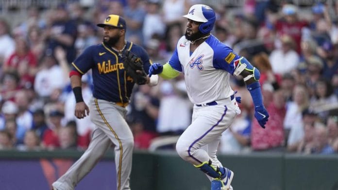 ATLANTA (AP) — Ronald Acuña Jr. disparó su 24to jonrón y logró su 50mo robo, para apoyar la causa de los Bravos de Atlanta, quienes se valieron de un primer inning de seis carreras para doblegar el sábado 11-5 a los Cerveceros de Milwaukee.