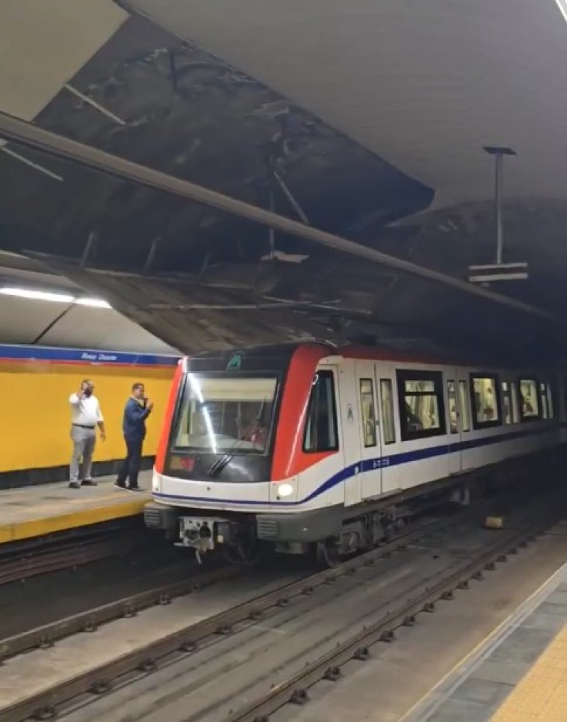 Un plafón de unos cuatro metros cuadrados se desprendió este jueves en la estación Rosa Duarte del Metro de Santo Domingo, según denunciaron usuarios del servicio, informción que fue confirmada por Oficina para el Reordenamiento del Transporte (Opret) en un escueto comunicado.