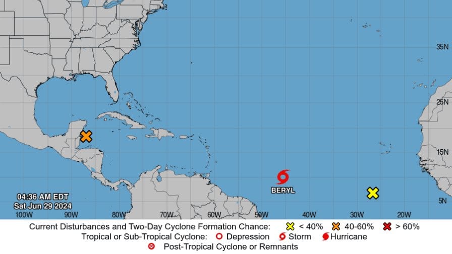 Se espera un fortalecimiento adicional constante a rápido durante los próximos dos días, y se espera que Beryl se convierta en un huracán esta noche o el domingo.