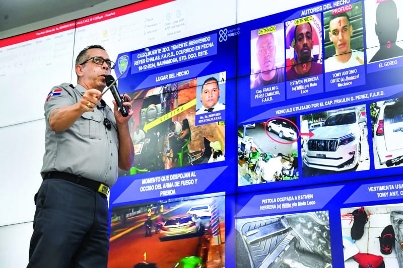 El coronel Diego Pesqueira, vocero de la Policía, dijo que fueron detenidos el capitán de la FARD, Fraylin G. Pérez Conrado, y el civil Estiven Herrera, mientras persiguen a Tommy Antonio Ortiz, alias “Jhonci el Mecánico” y un individuo solo identificado como “El Gordo”.