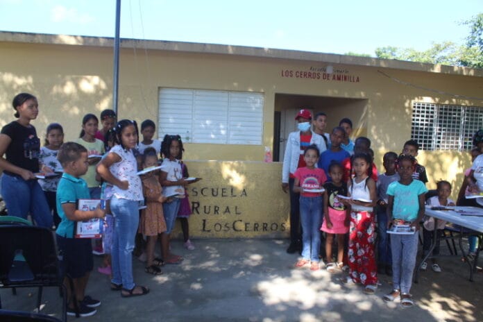 Las comunidades beneficiadas corresponden a Sangre Linda, Los Cerros de Aminilla, Los Indios, pertenecientes al municipio de Partido, mientras que otra comunidad, El Plan uno, correspondiente al municipio El Pino, también se hizo entrega de útiles escolares.