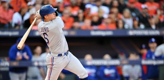 Josh Jung conectó un jonrón e hizo una buena jugada en la tercera base para iniciar una doble matanza crítica para Texas, que mejoró a 3-0 en estos playoffs, todo como visitante.