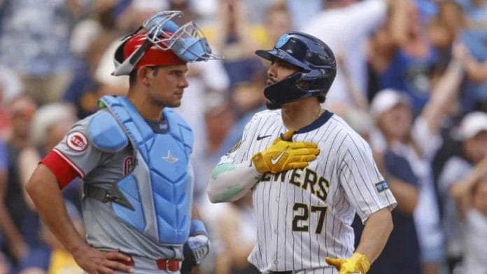 El dominicano Willy Adames despachó un cuadrangular de tres carreras en el sexto episodio y los Cerveceros de Milwaukee pusieron fuera en el plato la carrera del empate para terminar el juego y vencer 5-4 a los Rojos de Cincinnati el domingo, a pesar de que Elly De La Cruz pegó cuadrangular, dio un triple y anotó tres carreras.